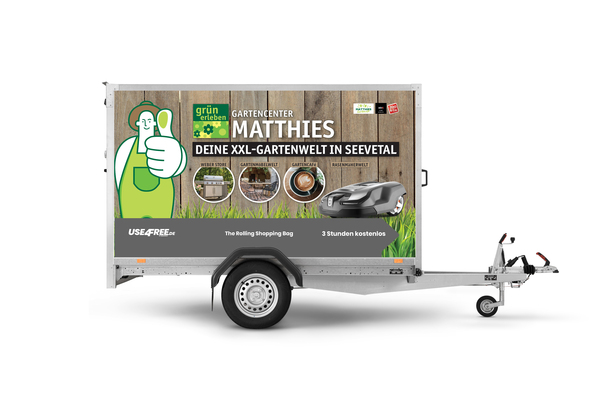 Kein Kauf erforderlich: Denke daran, dass du keinen Kauf bei Matthies Gartencenter tätigen musst, um einen Use4Free Anhänger auszuleihen.